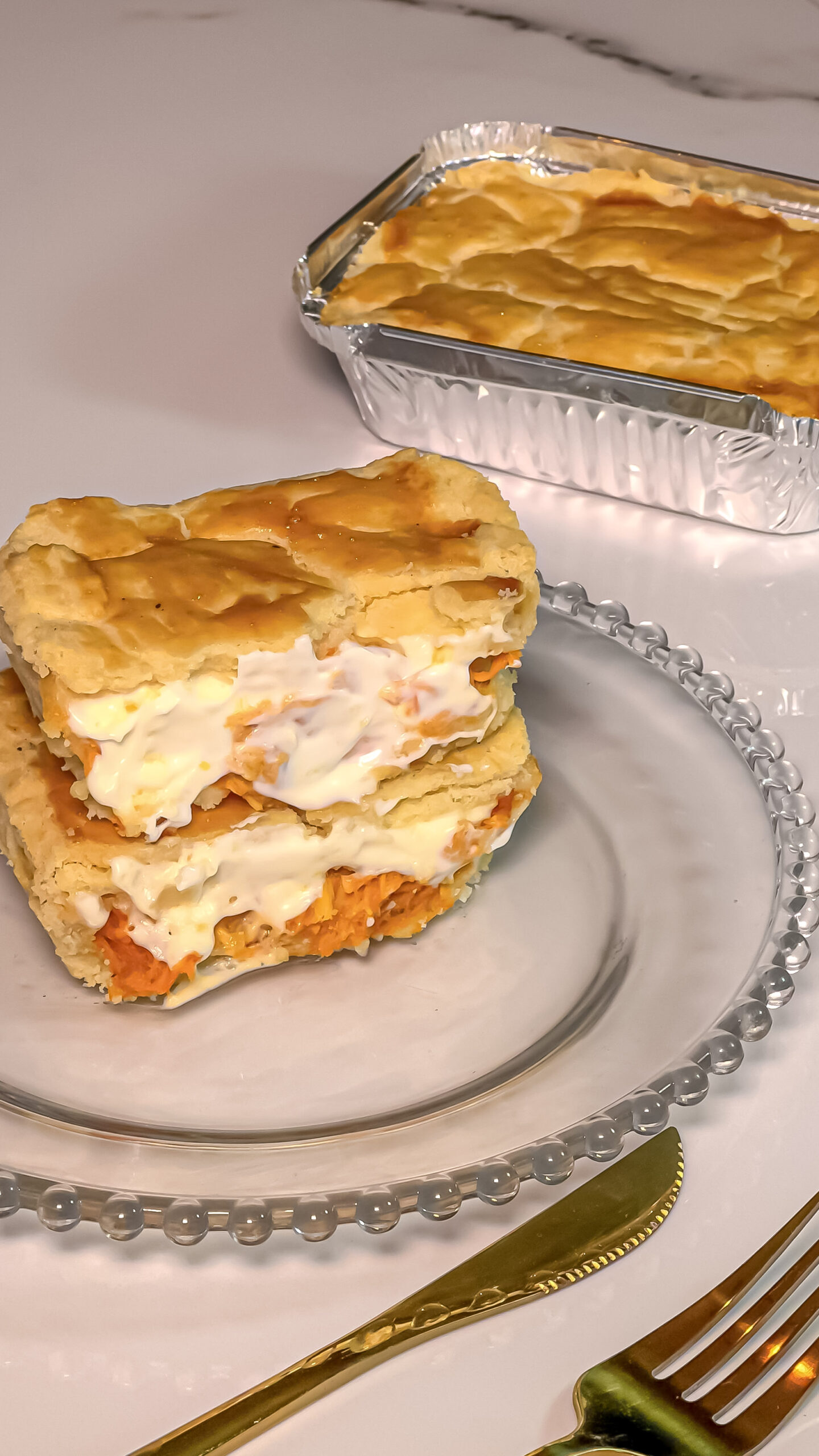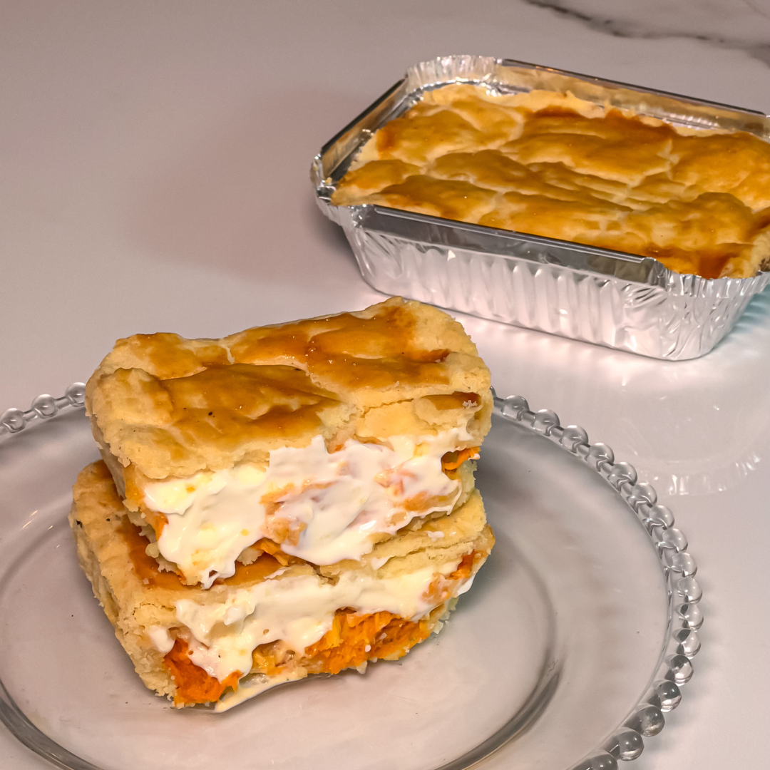 Ideal para lanches! Preparada com farinha zero glúten , ovos e manteiga sem sal. que garante uma massa leve e saborosa. No recheio utilizamos frango desfiado, temperada com sal marinho, cheiro verde e e requeijão light. Experimente esta delícia e saboreie cada pedacinho!
